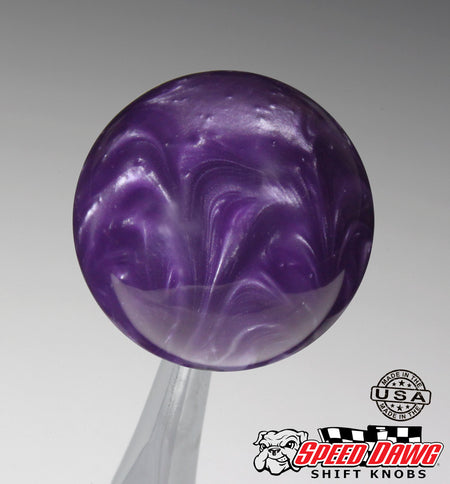 STEALTH SERIES. Premium 2-1/8" diameter Purple Pearl Shift Knob. Comprised of specially formulated high-impact polymer resin specifically designed to meet performance level torque and temperature requirements. This knob has a 16mm x 1.5 Brass master insert and comes with a threaded Brass adapter & jam nut in the size of your choice. Made in the USA.